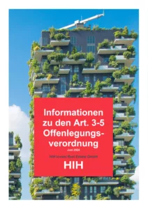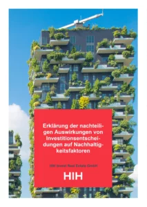 Über das Gesamtportfolio verfolgen wir bei der HIH Invest einen Nachhaltigkeitsansatz, der sowohl prozessuale als auch explizite Nachhaltigkeitsmaßnahmen umfasst. Diese umfassende Strategie berücksichtigt sowohl regulatorische Anforderungen als auch die Bedürfnisse der Investoren. Die